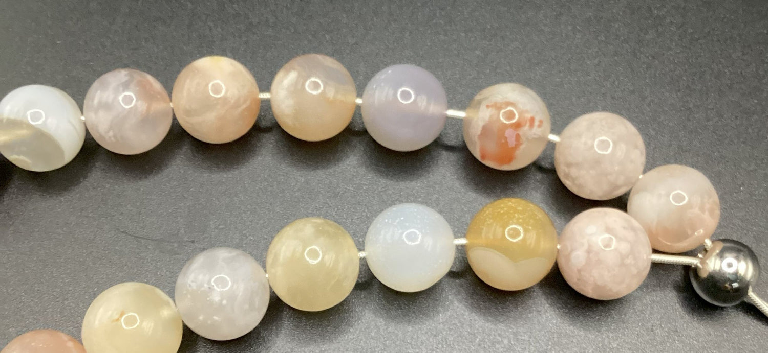 Each piece is individually hand-strung on .925 Sterling Silver and features 100% natural Cherry Blossom Agate beads with smooth, polished finishes that feel satisfying in the hand and flow effortlessly with each movement.