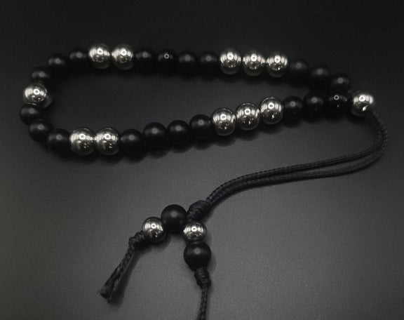 Matte Black Onyx & Stainless Steel Komboloi - Greek Worry Beads