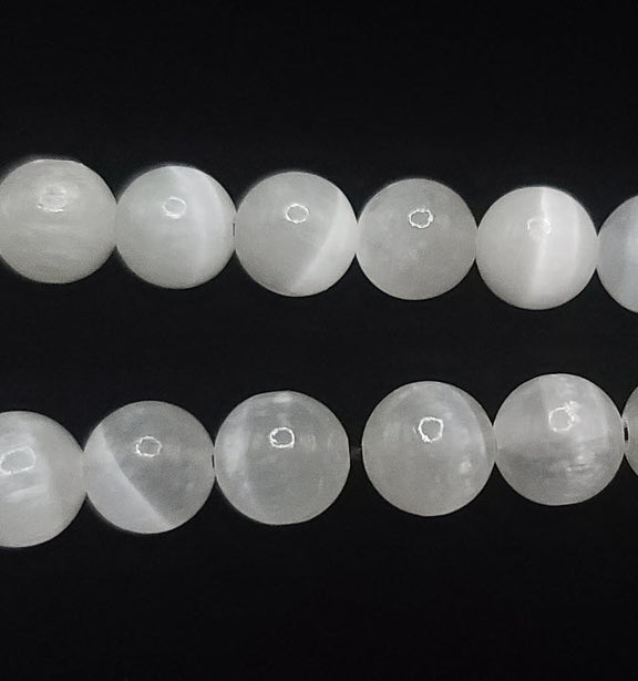 Each bead is crafted from polished natural selenite, carefully selected for its weight and luminescence.